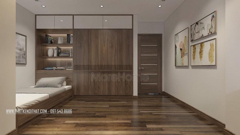 Cửa gỗ óc chó hiện đại có chất lượng cao và đẹp mắt, làm cho không gian phòng ngủ biệt thự hà nội trở nên bền vững.