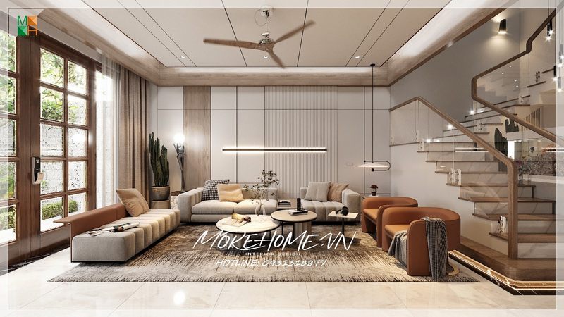 Phòng khách được trang trí bằng màu sáng tươi sáng, giúp không gian trở nên sang trọng, lịch sự và hiện đại. Đây là gam màu phổ biến nhất hiện nay trên thị trường.