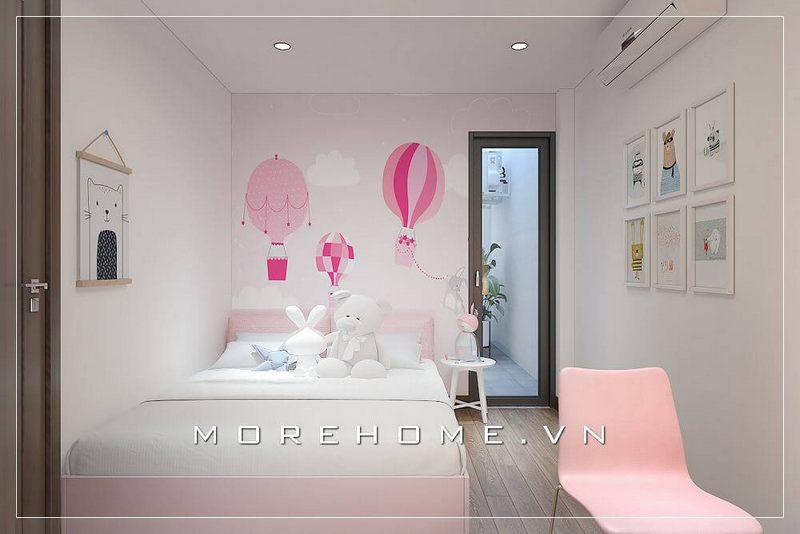 Phòng ngủ của bé gái sẽ được thiết kế với gam màu hồng phấn, mang lại sự dễ thương và đáng yêu.