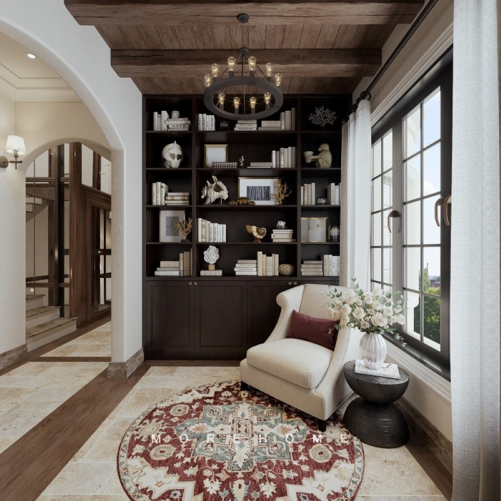 Không gian nội thất trong phòng khách được bố trí bằng gỗ óc chó tân cổ điển cao cấp, đẹp, sang trọng để tạo nên sự tinh tế, sang trọng cho biệt thự, nhà phố.